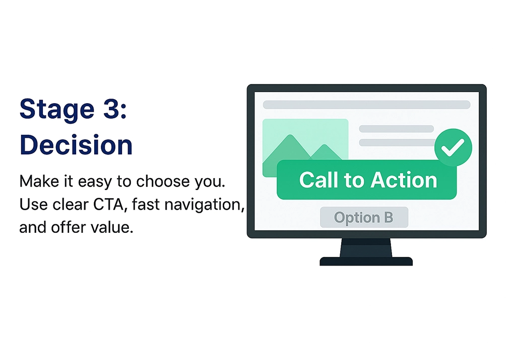 The customer decides whether to choose you — often based on how clear and easy your offer and call to action is.